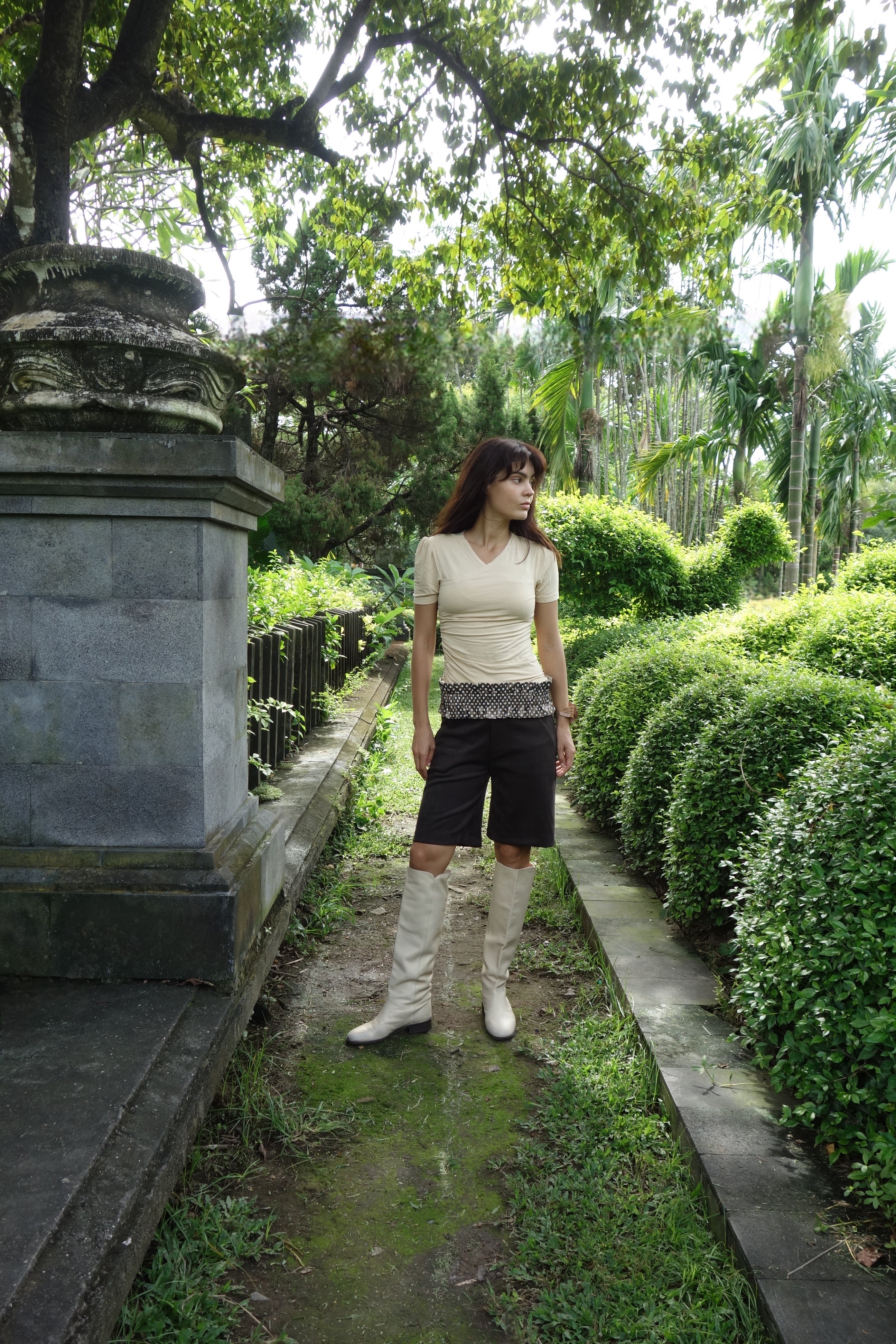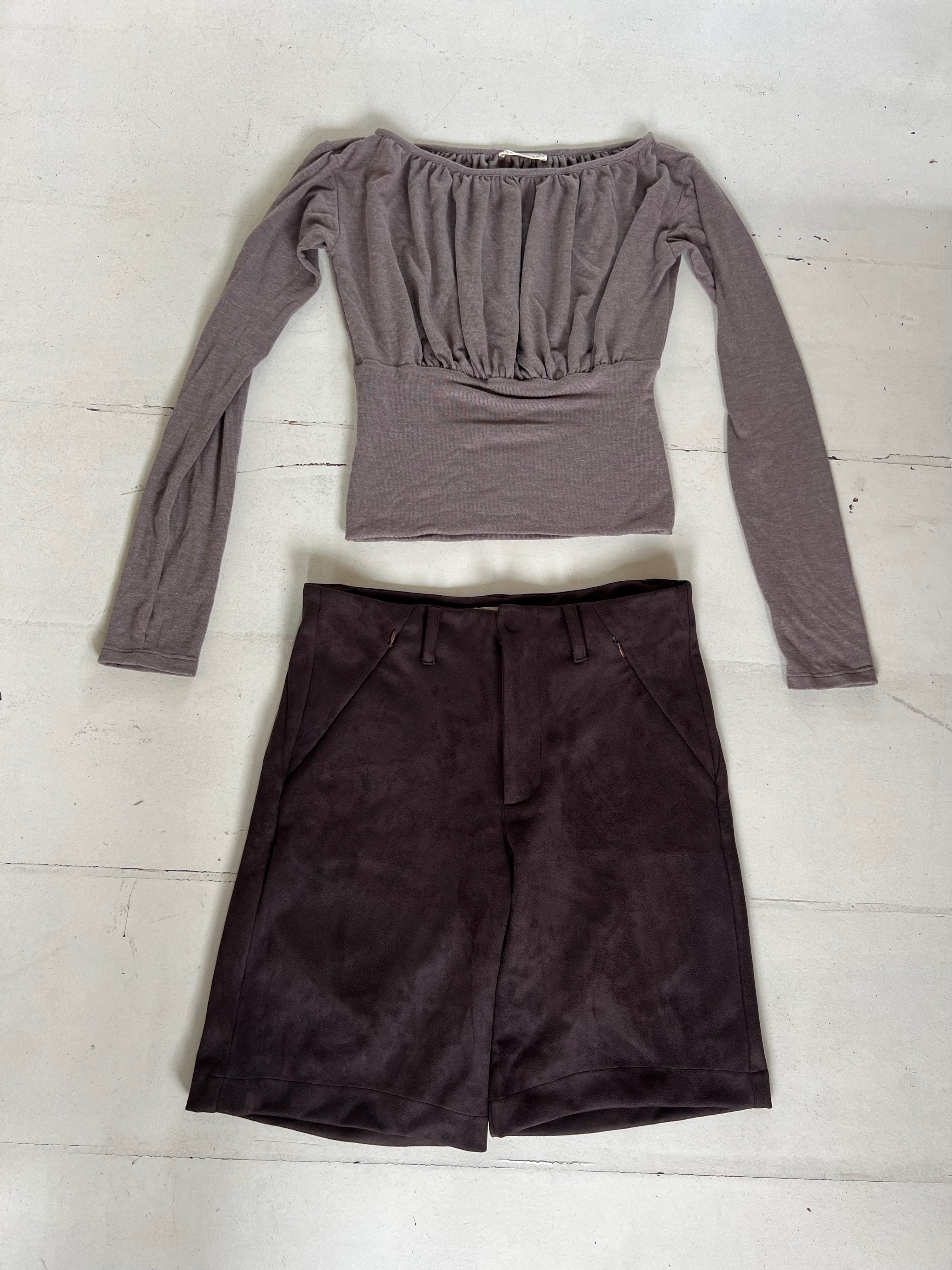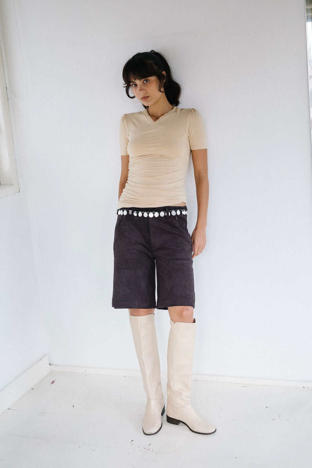 Mid-waist bermuda pants crafted with faux suede. Made in Barcelona.