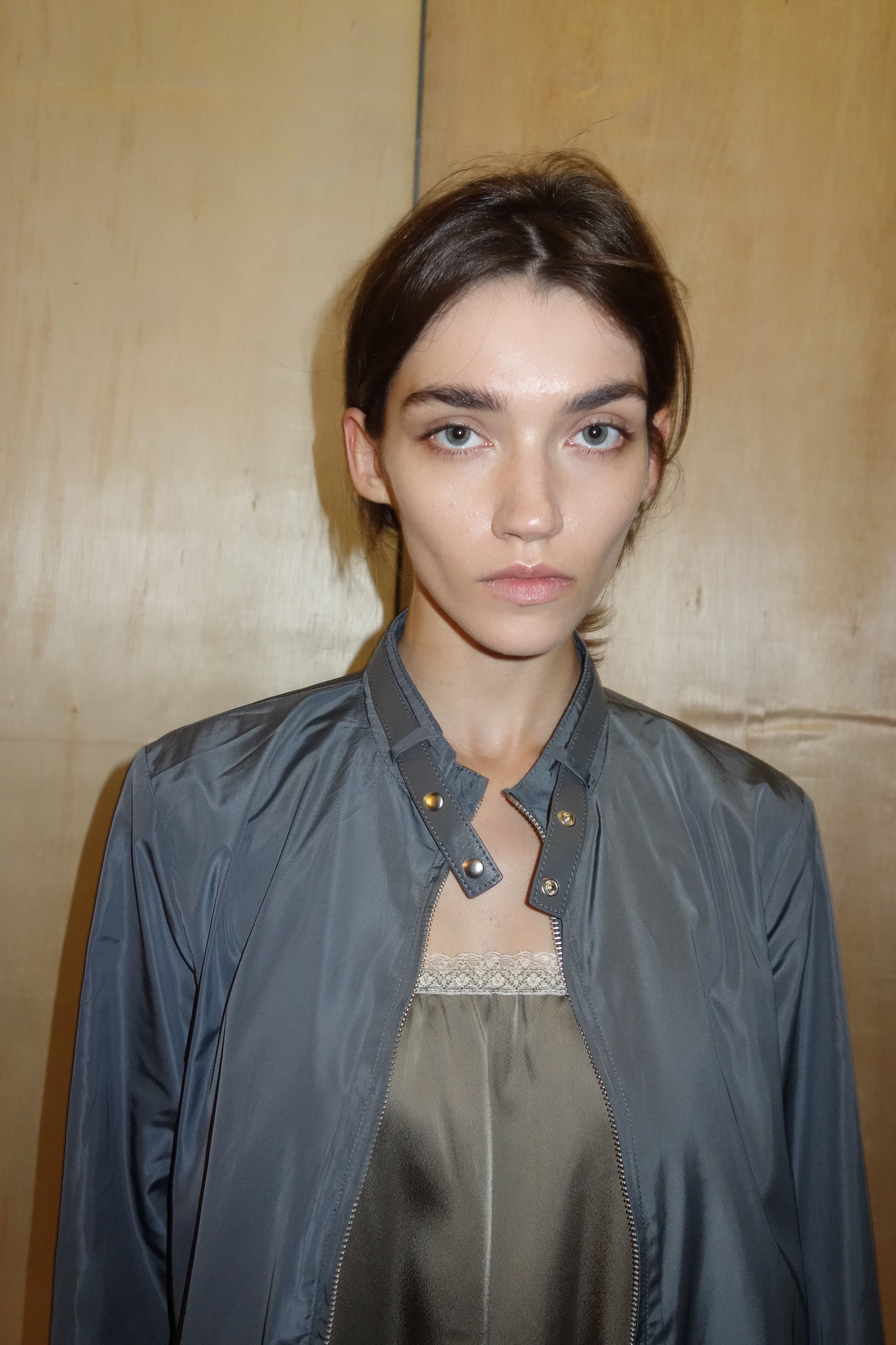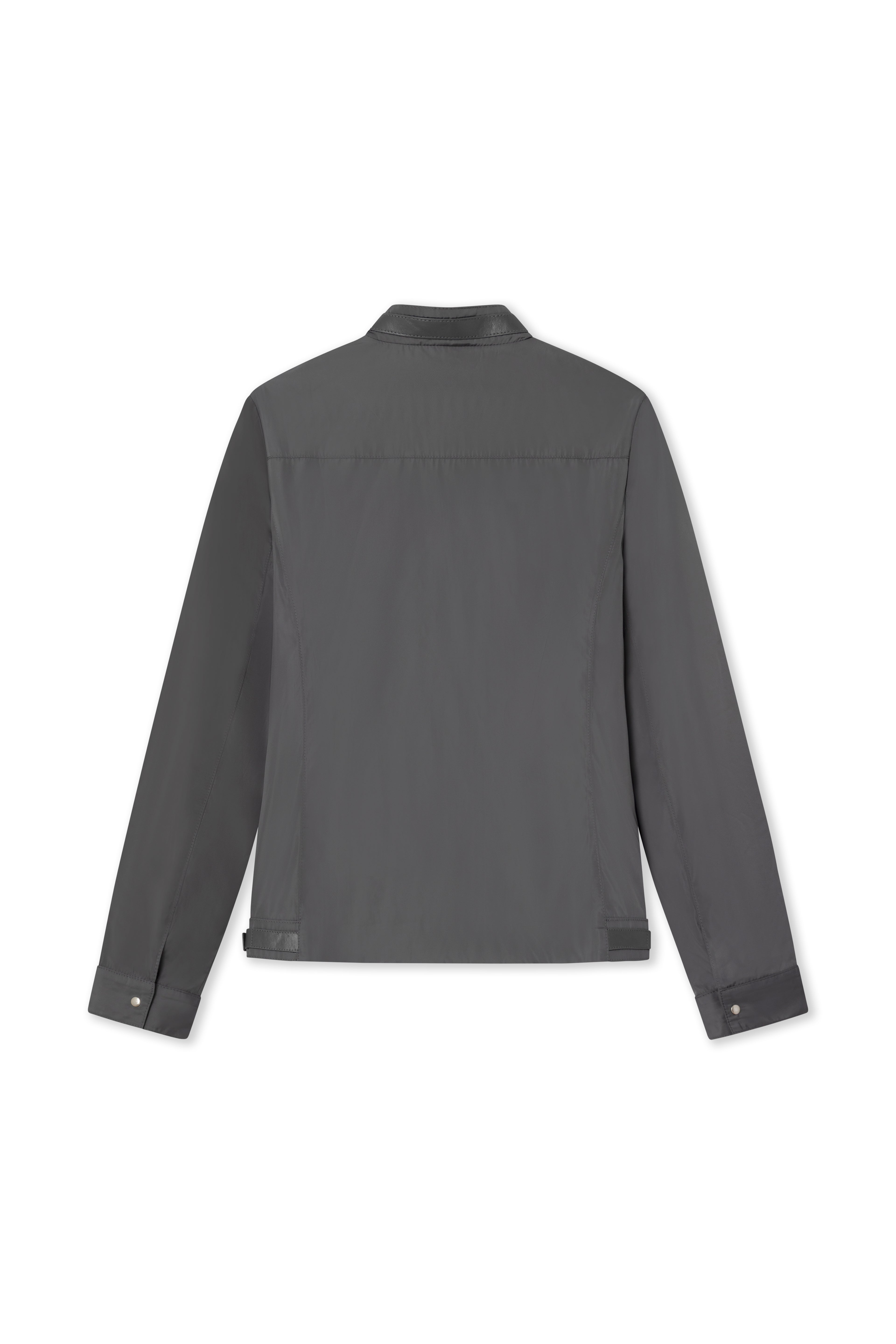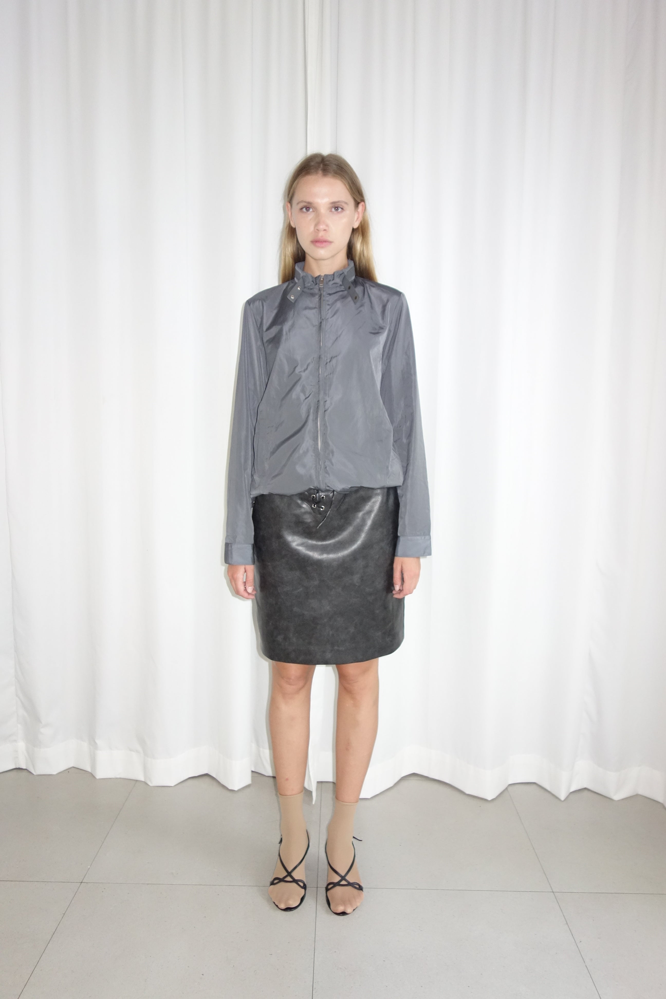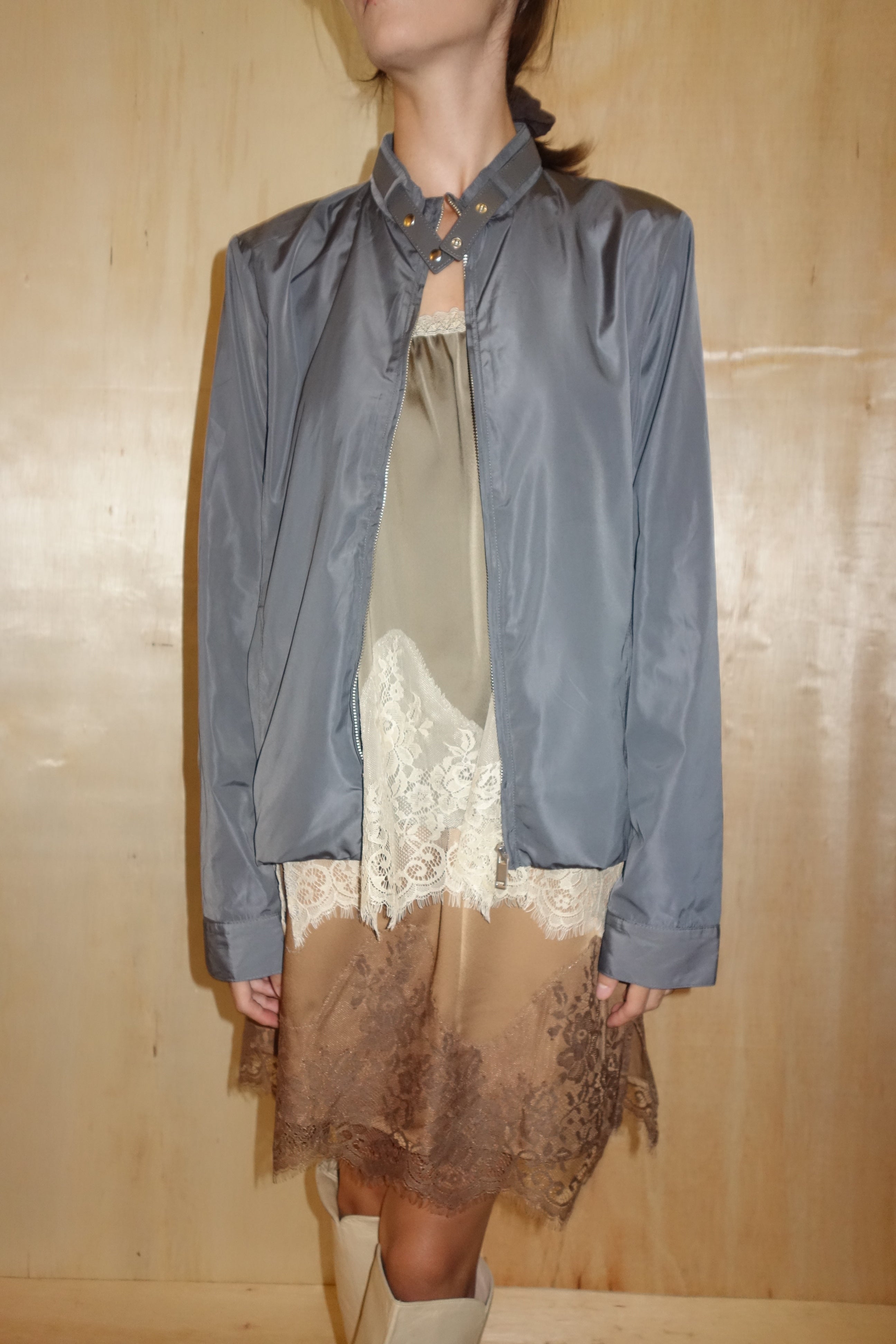 Sporty jacket with seam pockets and buckle detailing at the neck and sides.
