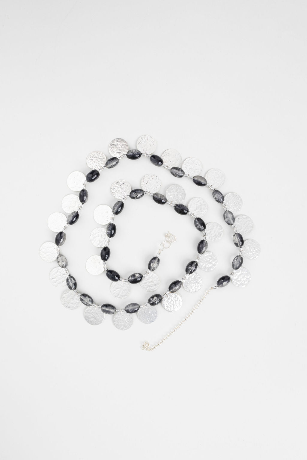 The funkiest belt. Shine and bling with the luna belt made of hand crafted silver platted coins combined with opaque beads. Lift up your summer night looks or rock it with your bikini this summer.