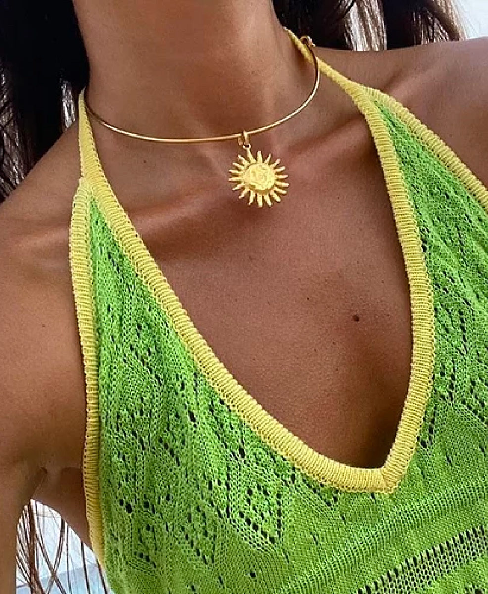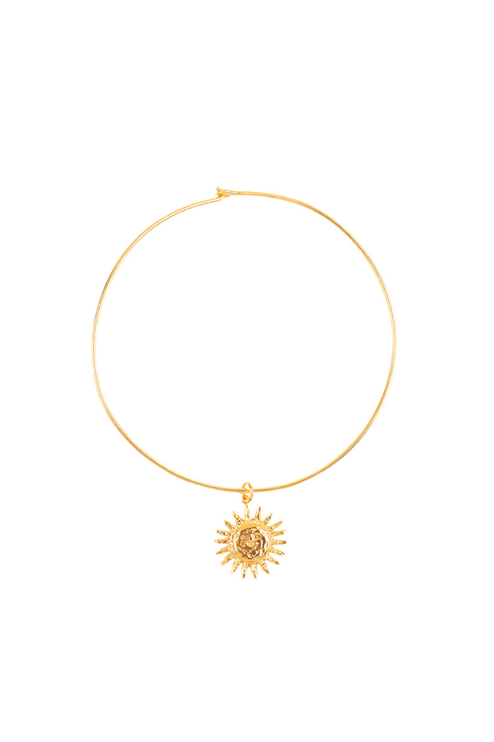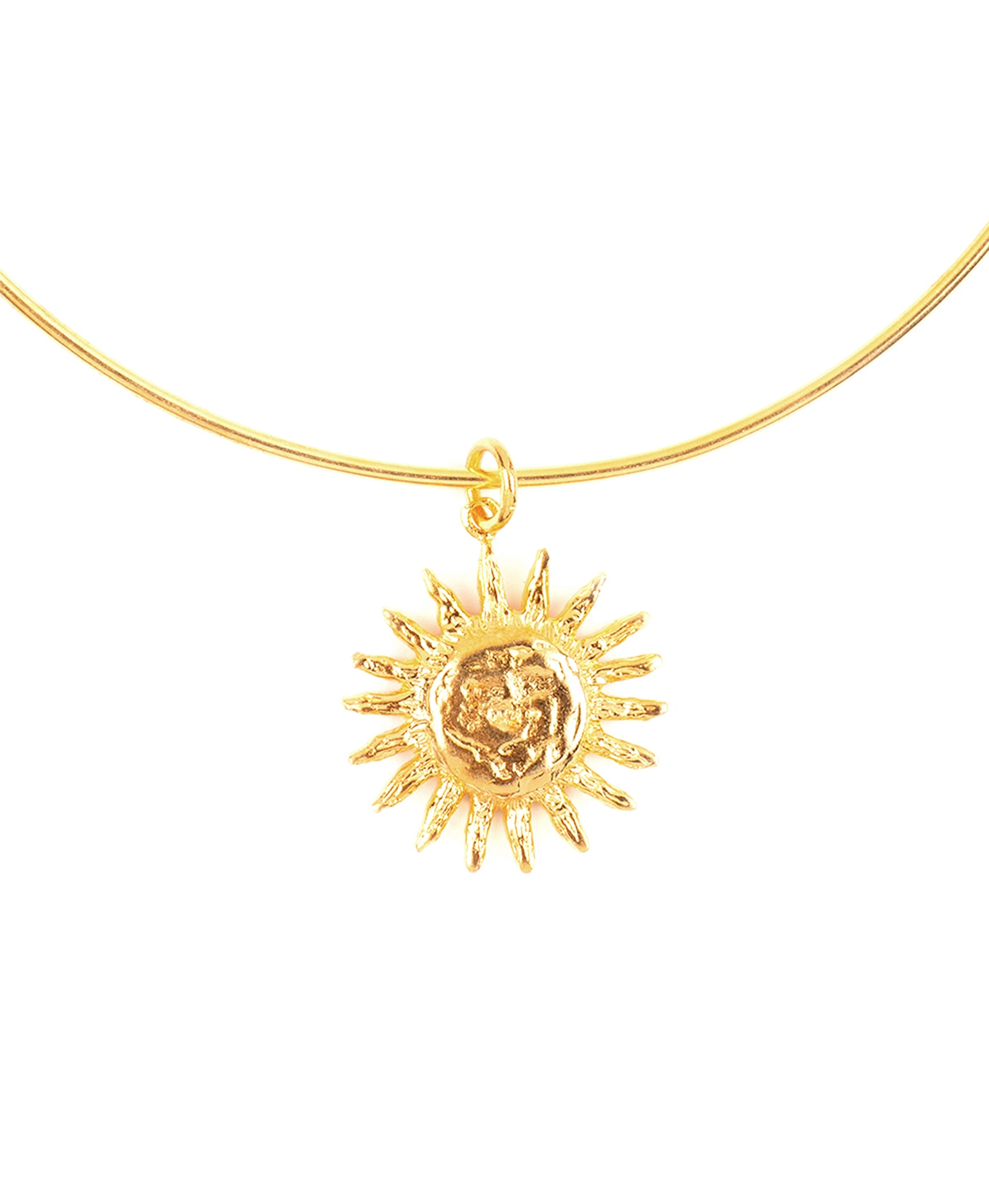 The Sun Charm features our stunning Sun Charm and gold-wire choker pairing. What makes the Sun Charm unique, however, is it personifies the very essence of Mais x Frida. Joy, warmth, and fortune—these three elements make us who we are.
