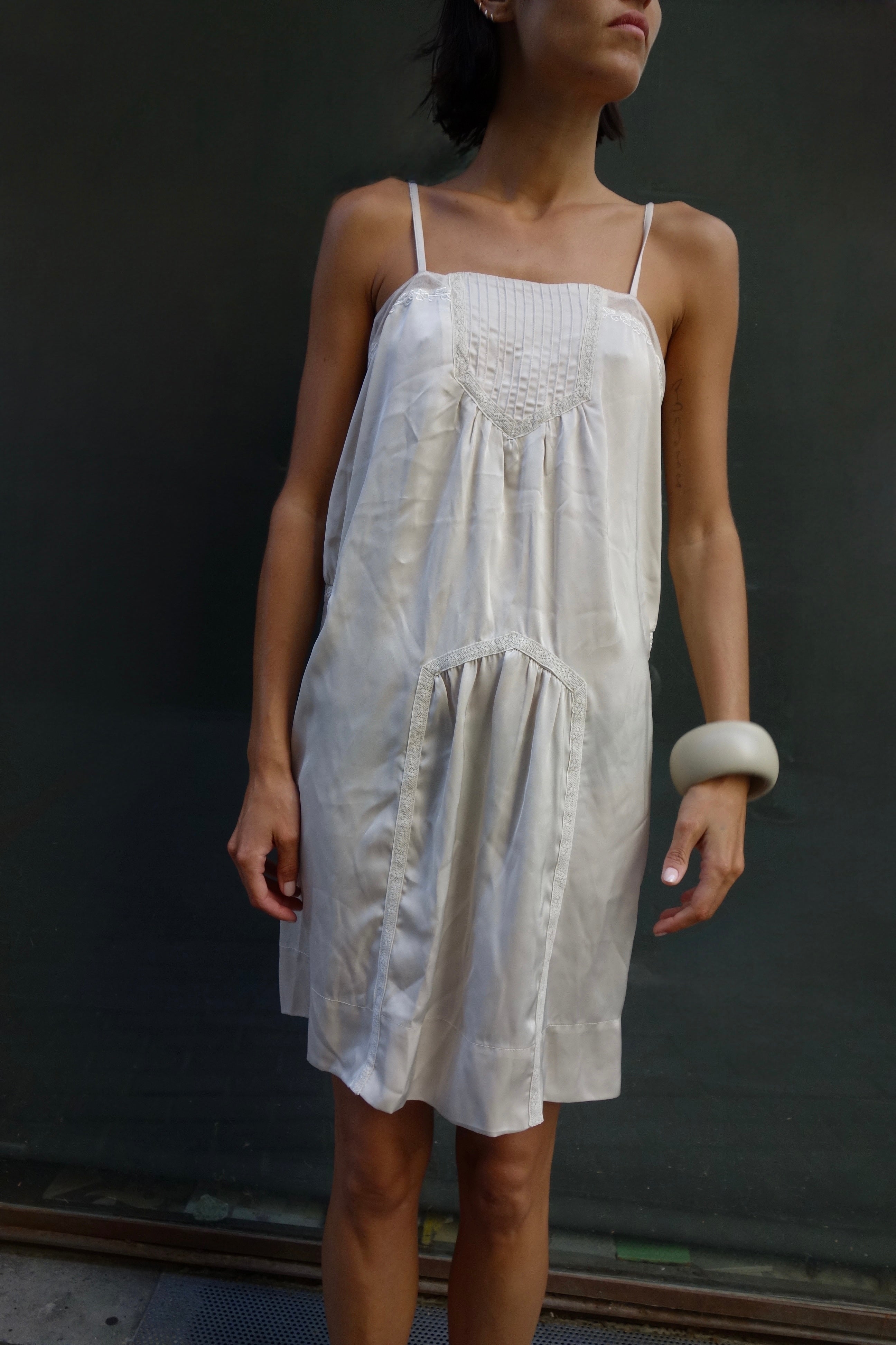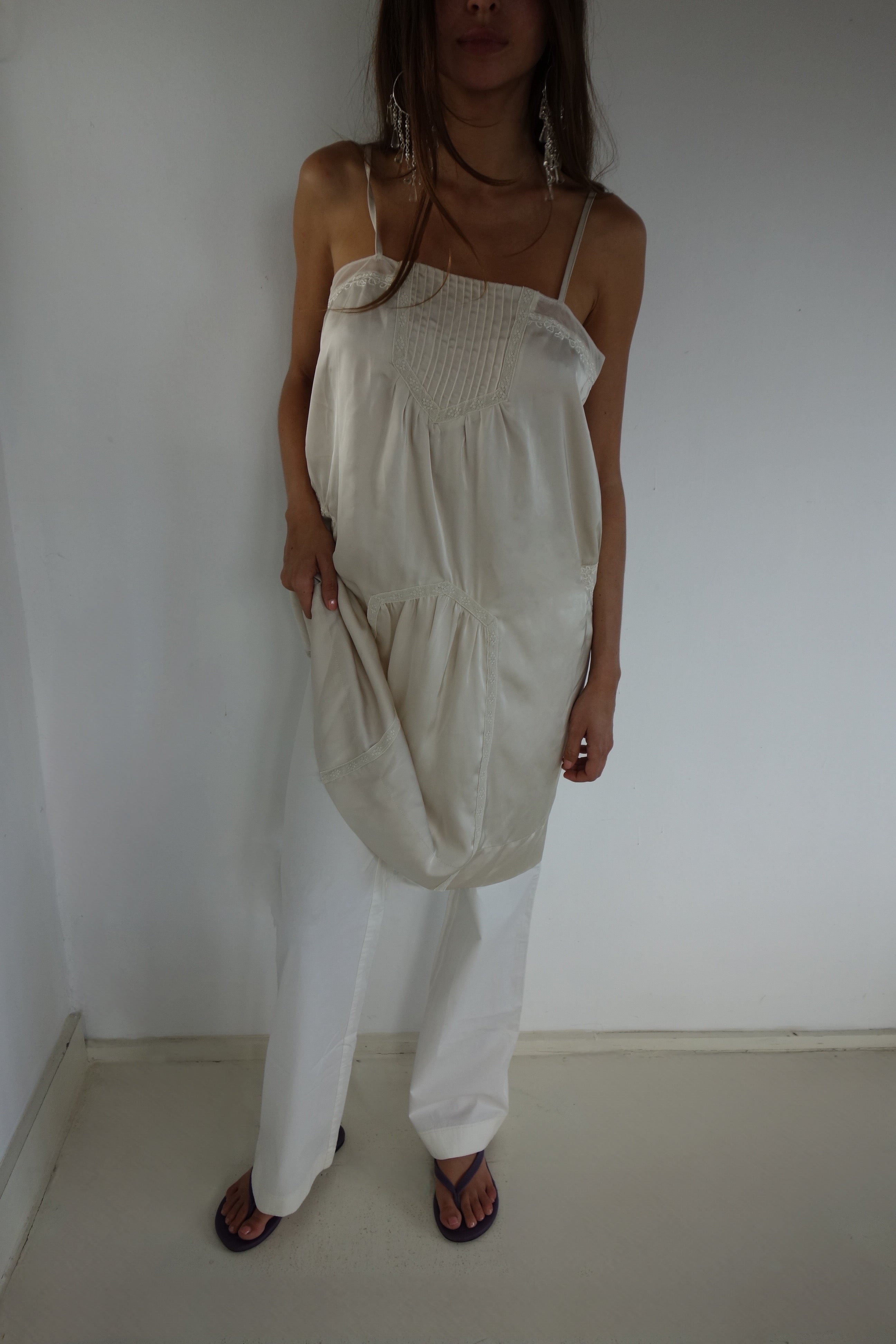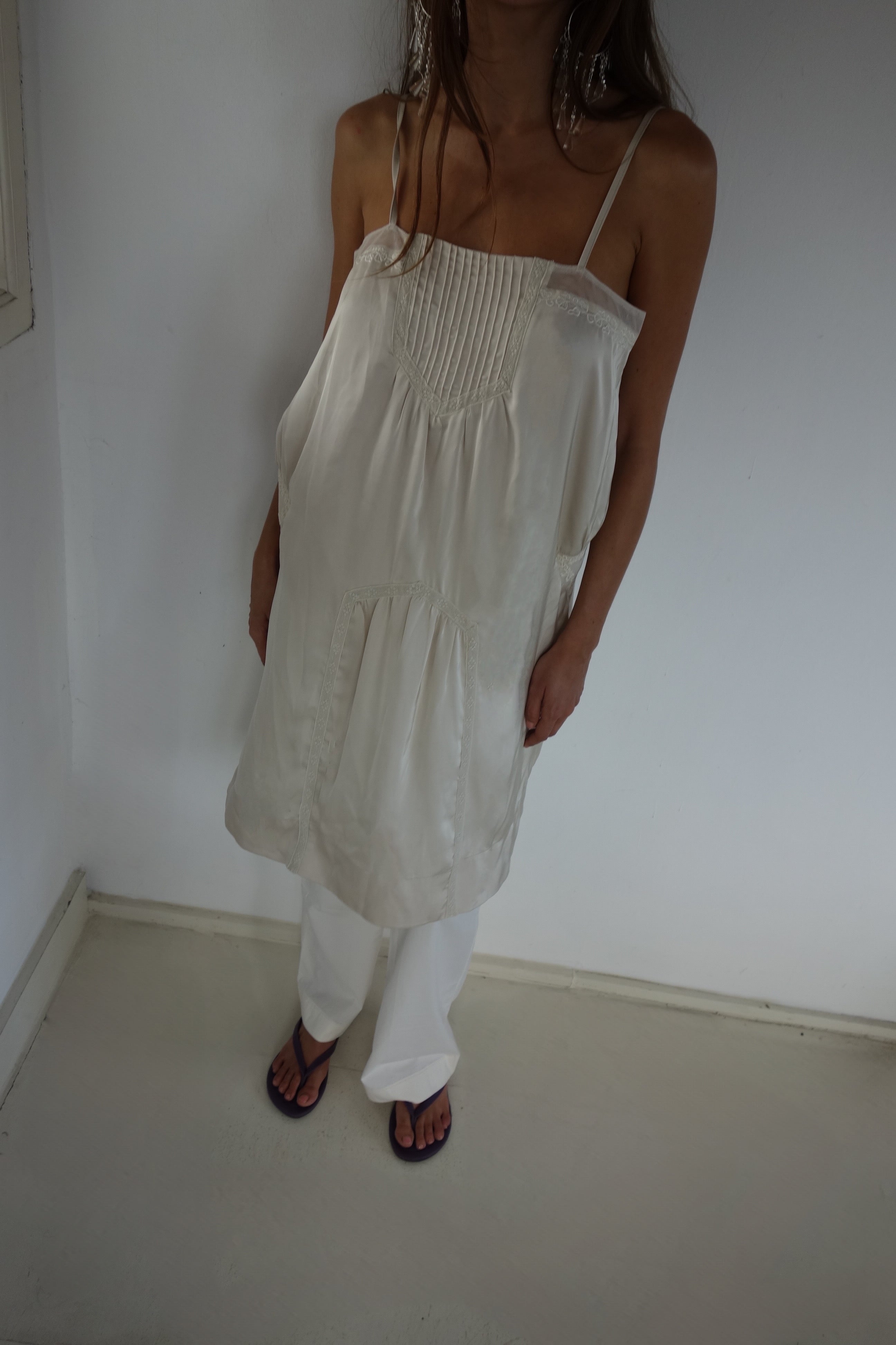 Midi strappy dress with lace details.