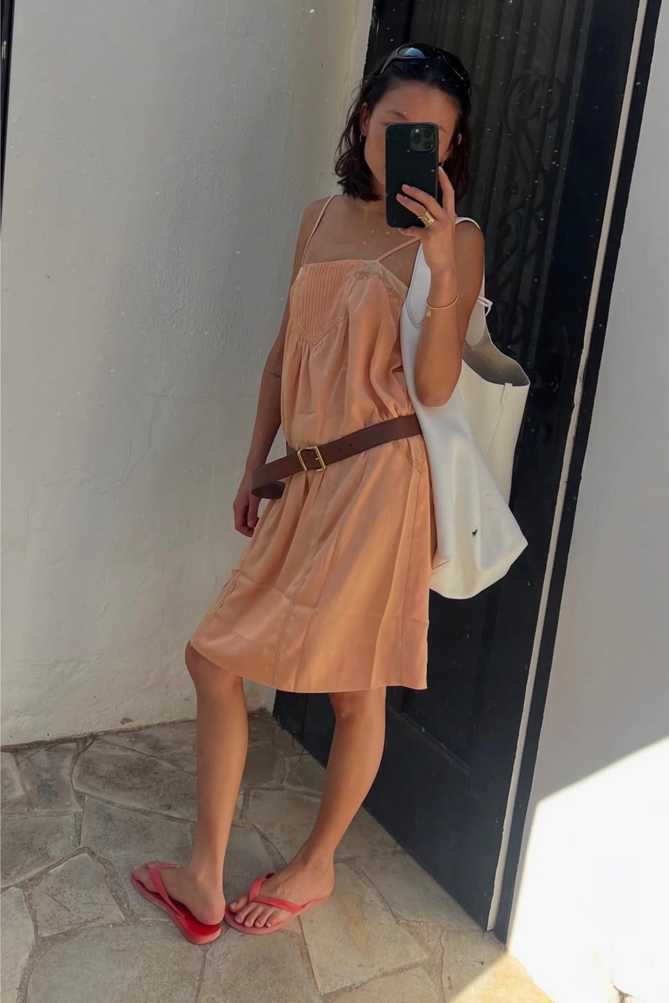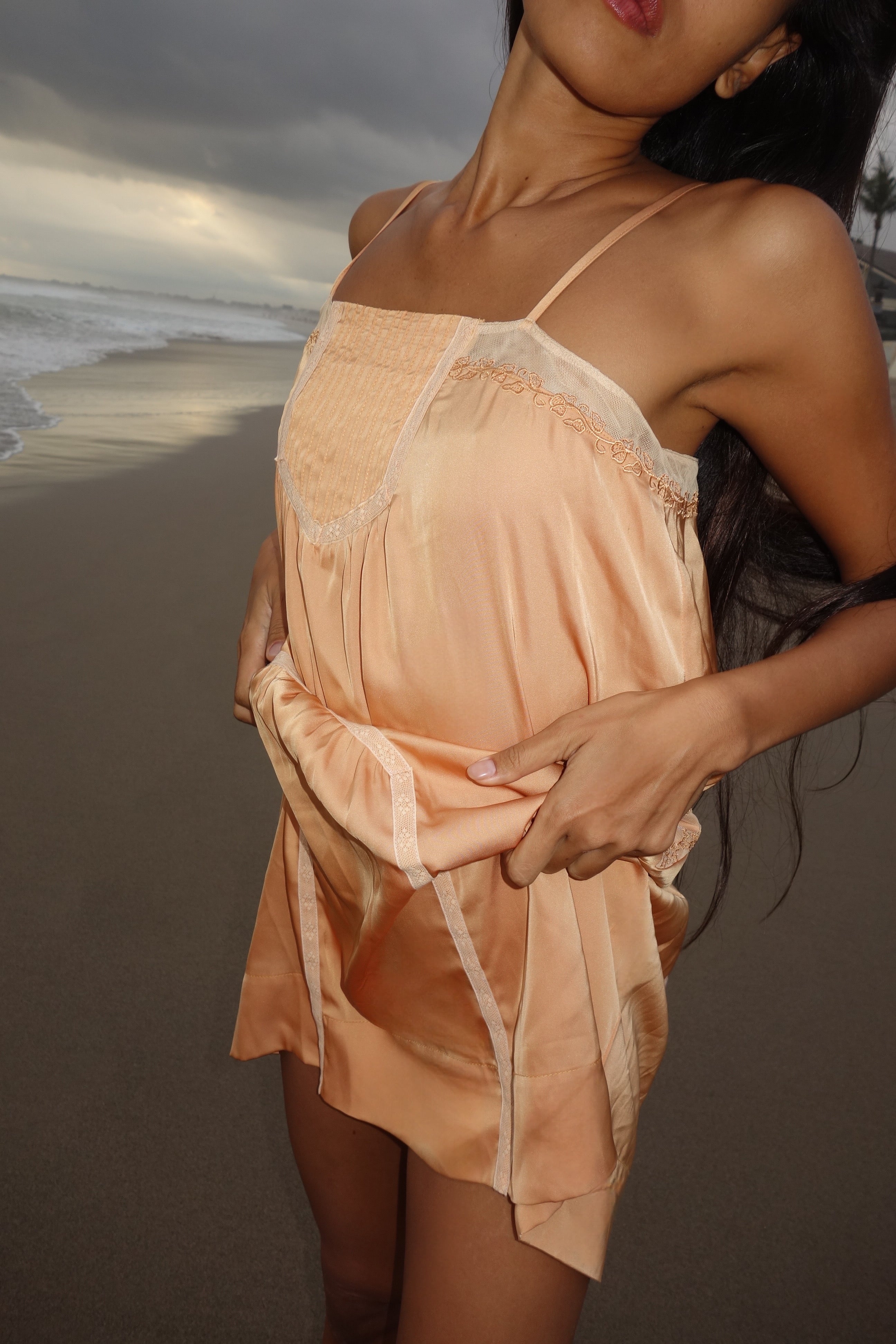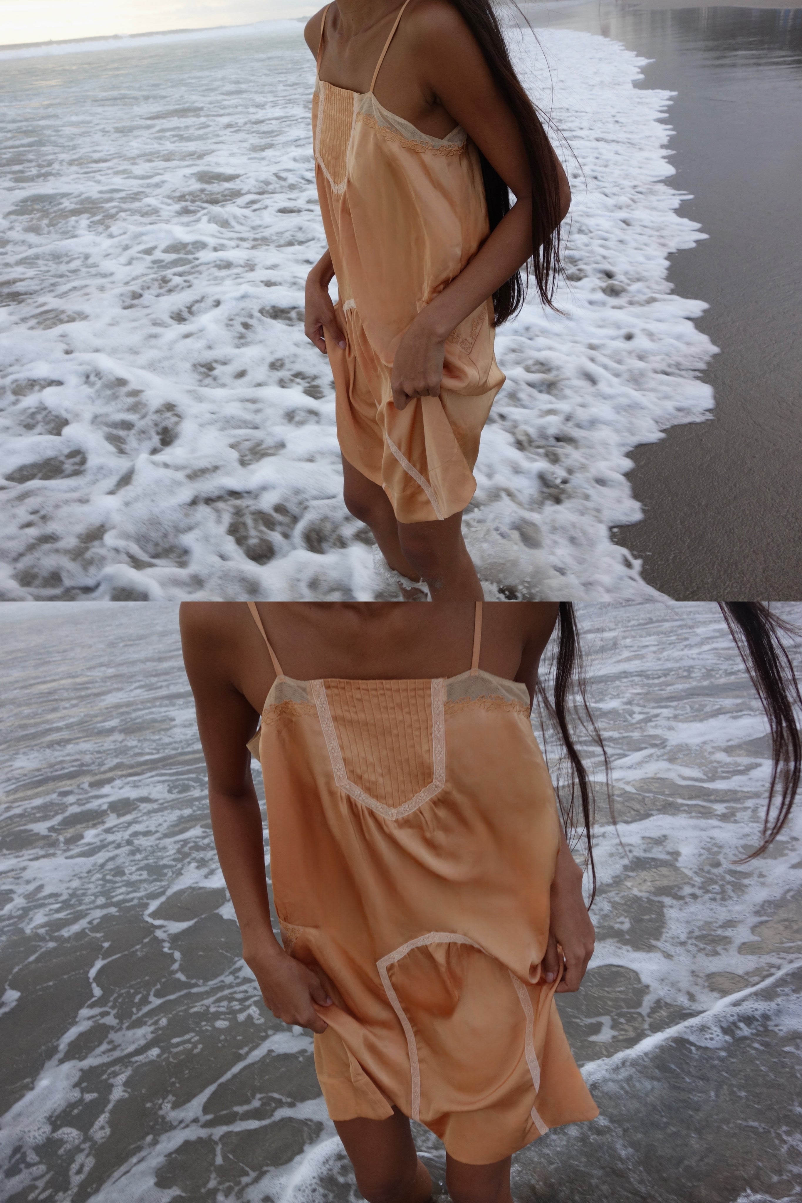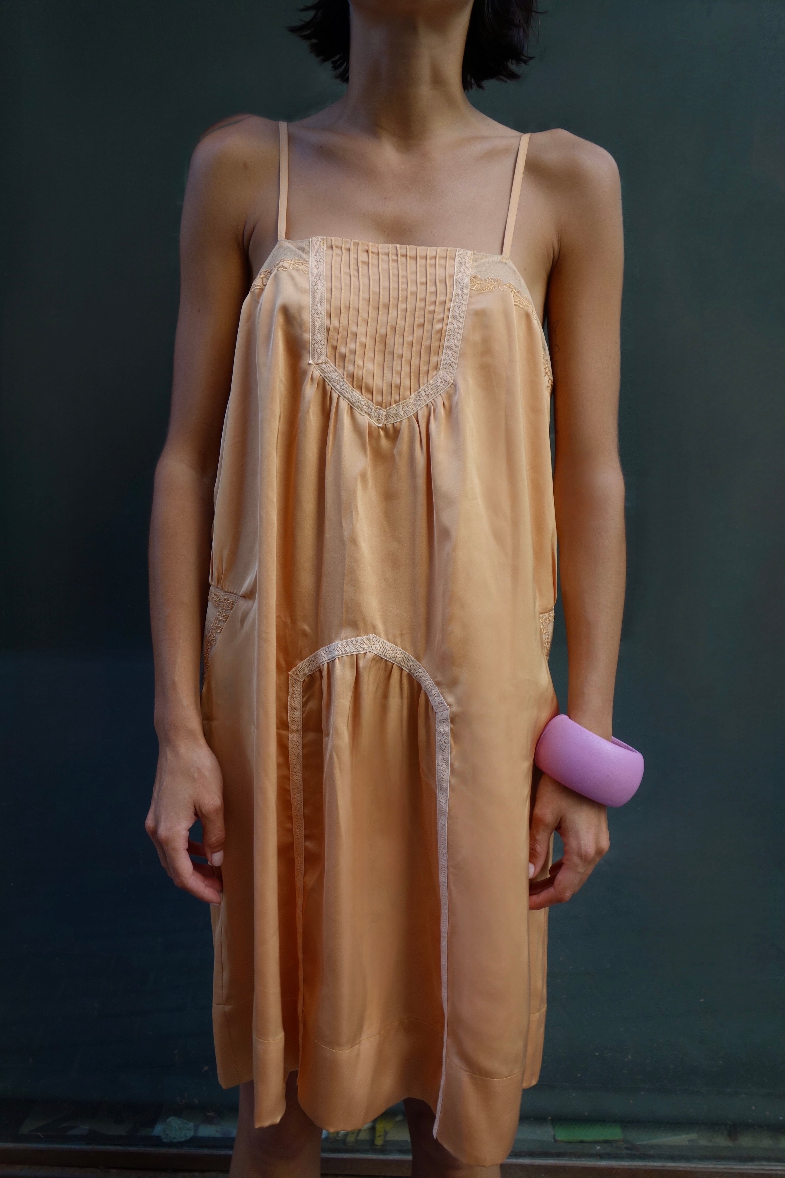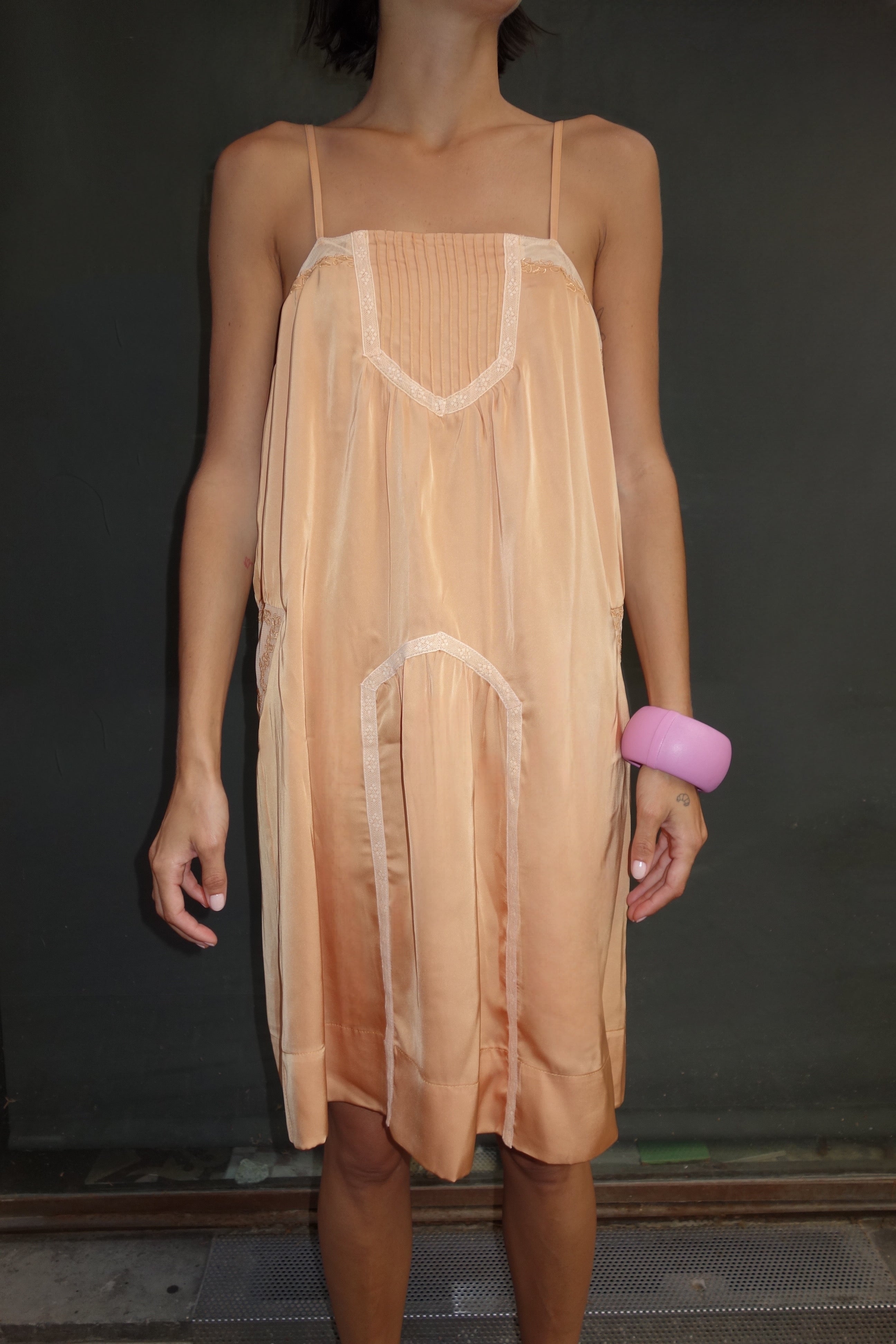 Midi strappy dress with lace details.