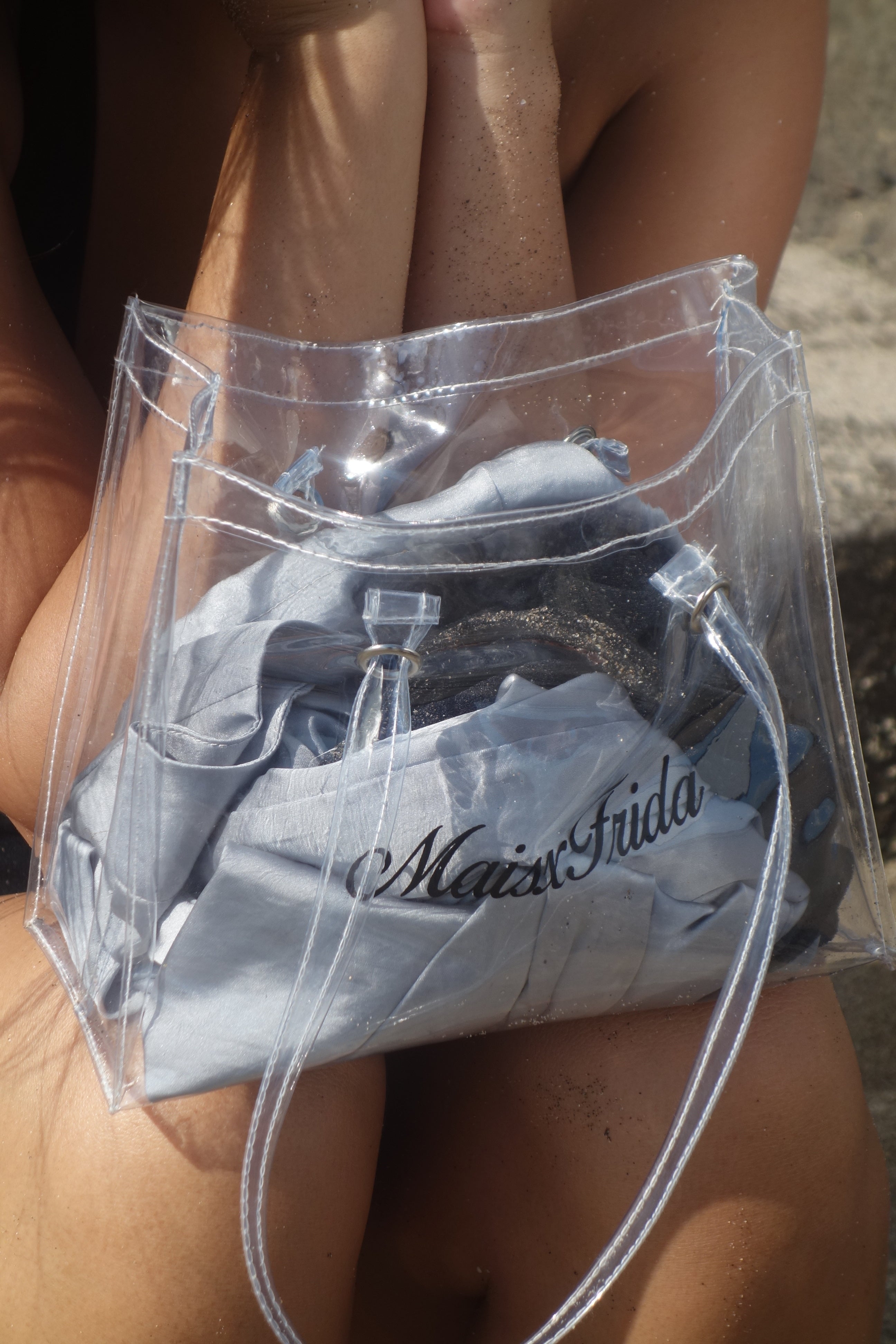 Recycled plastic bag to carry to the beach and fill with your wet bikinis & sunscreen.