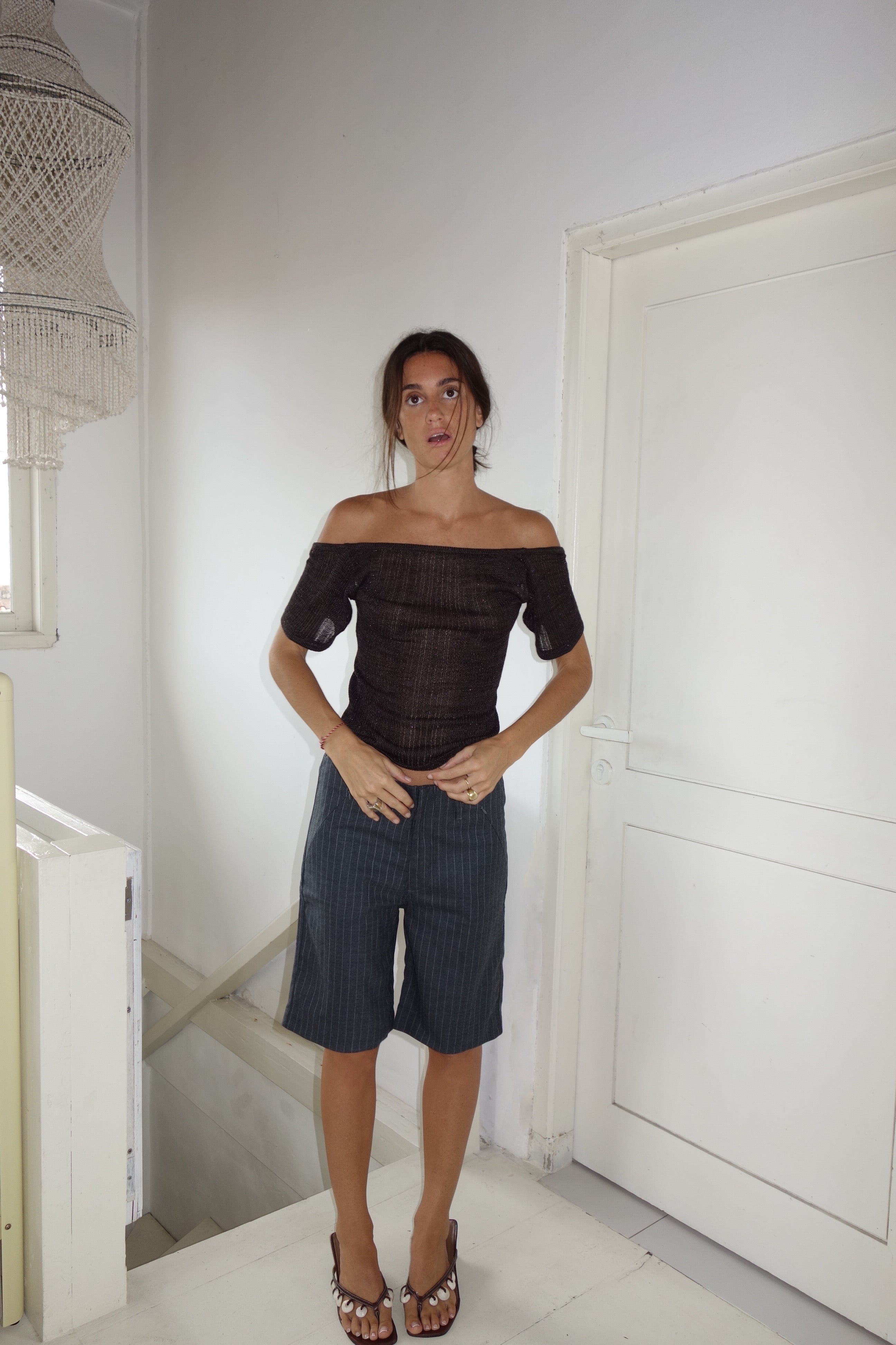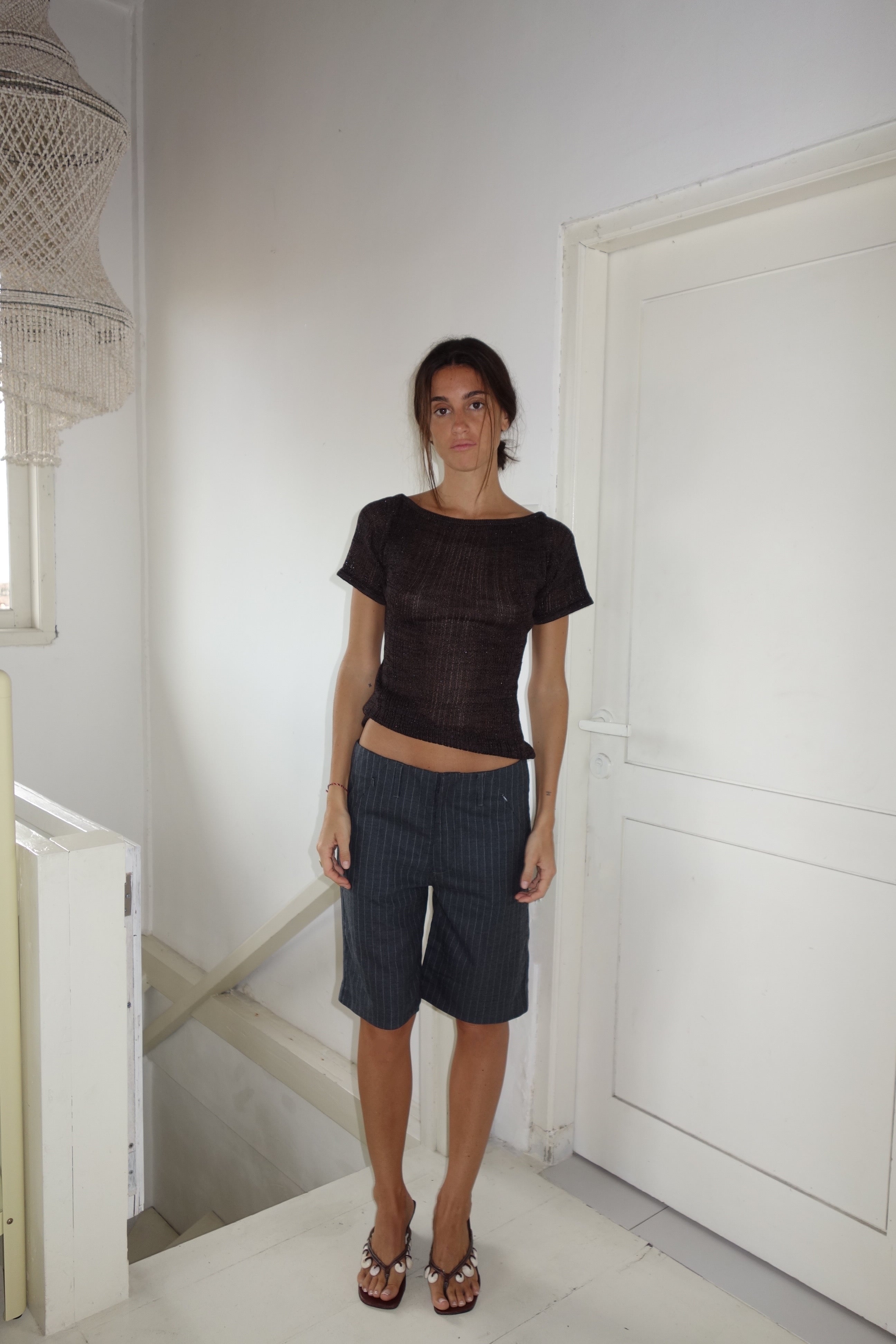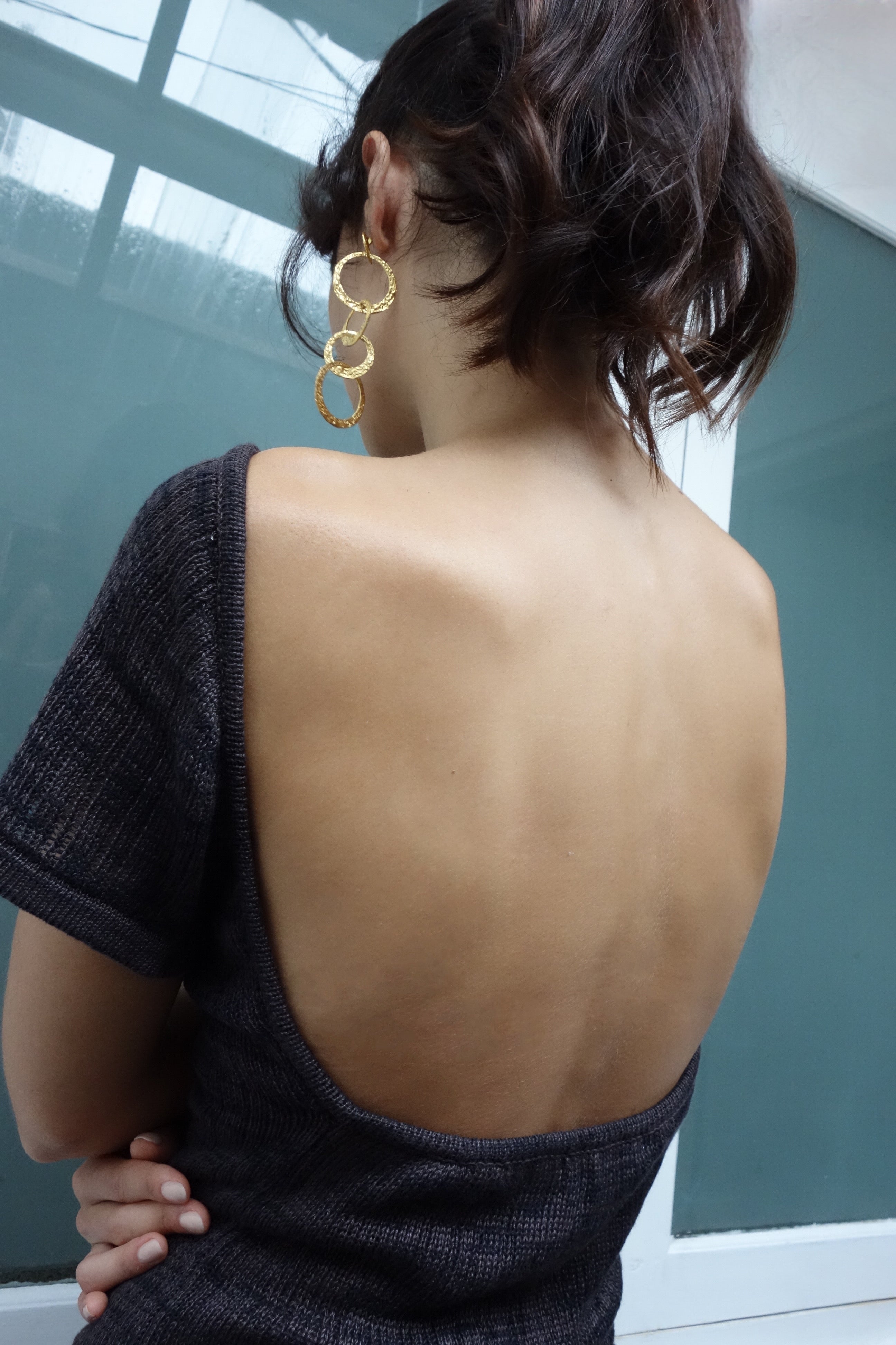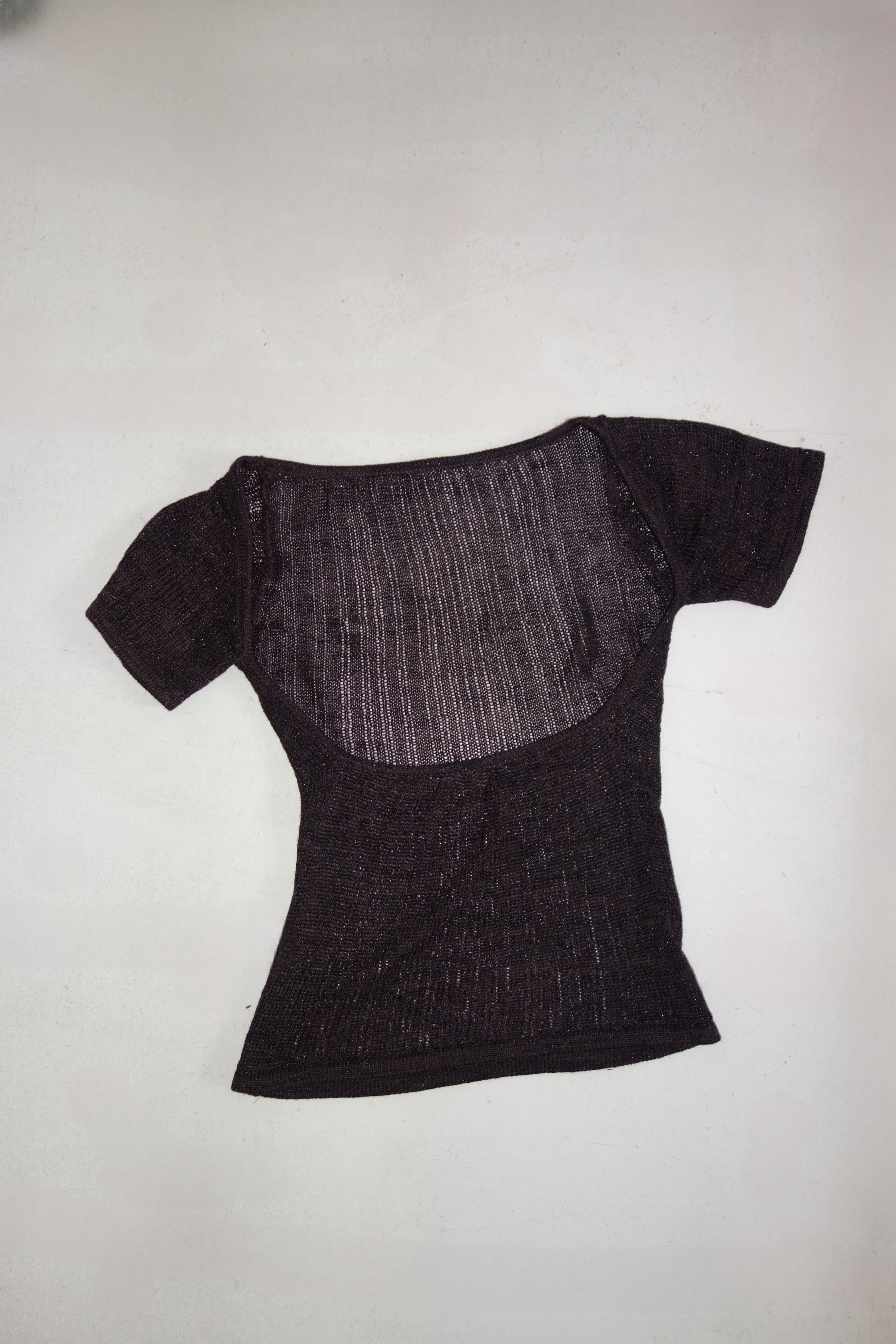Knitted top with open back in black & brown