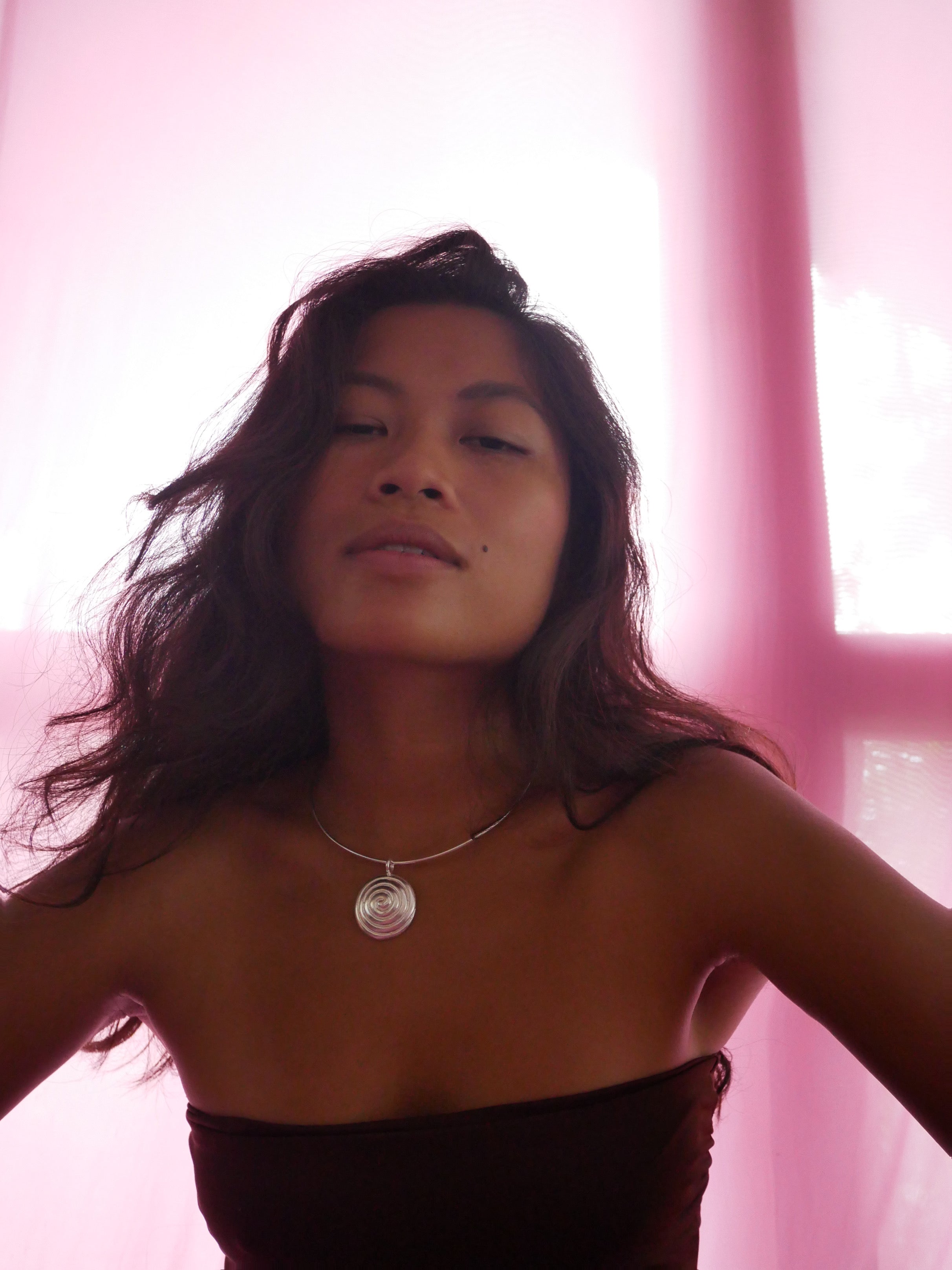 Spiral choker charm with rigid necklace